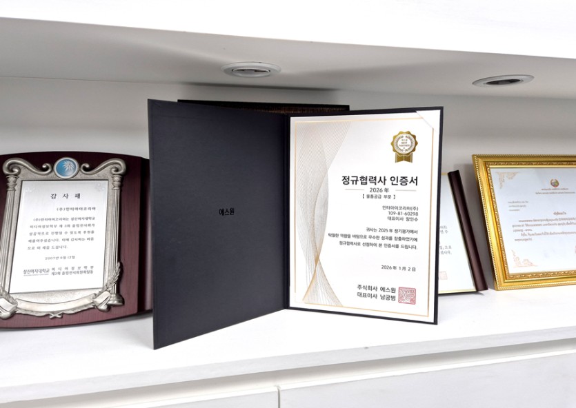 인터아이코리아는 주식회사 에스원의 2026년 우수 정규협력사(A등급, 물품공급 부문)로 선정되었습니다.
